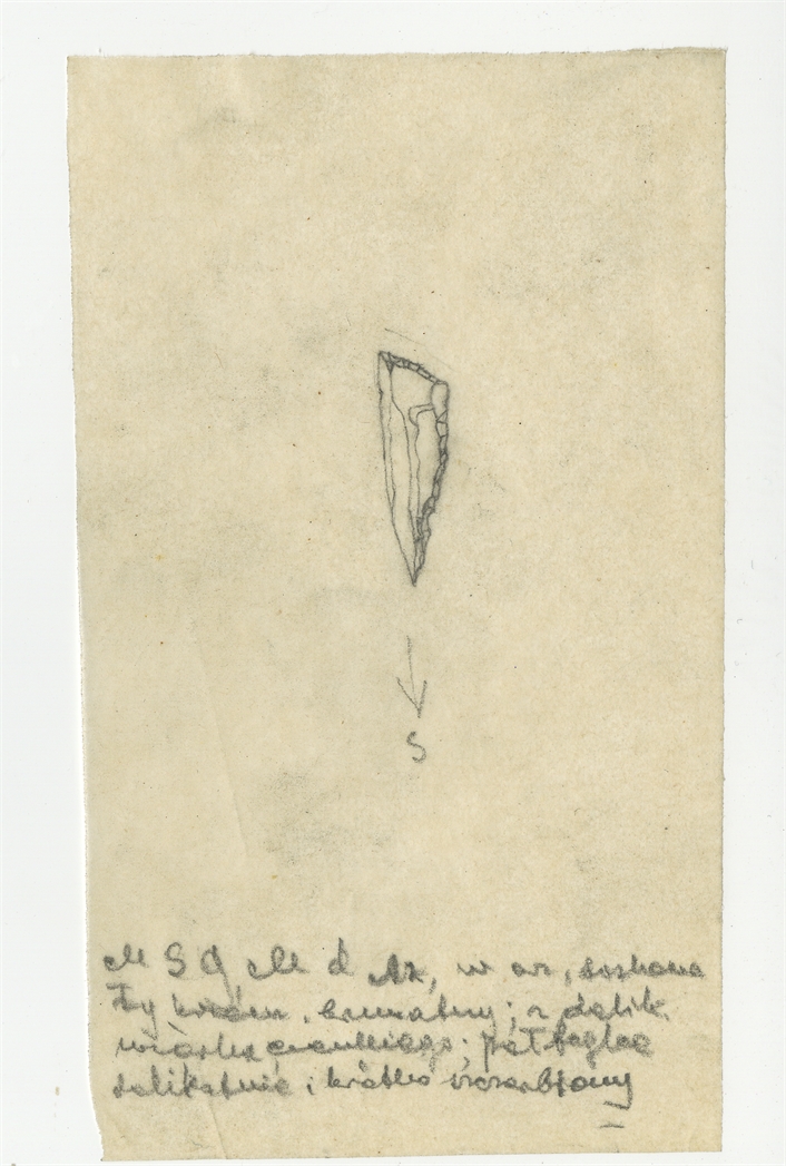 Rysunek zabytku krzemiennego z Mas-d'Azil w ołówku