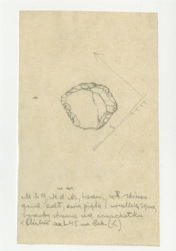 Rysunek zabytku krzemiennego z Mas-d'Azil w tuszu