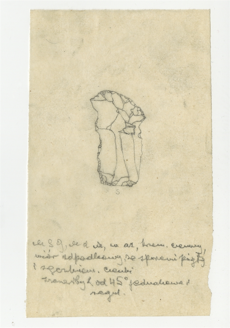 Rysunek zabytku krzemiennego z Mas-d'Azil w tuszu