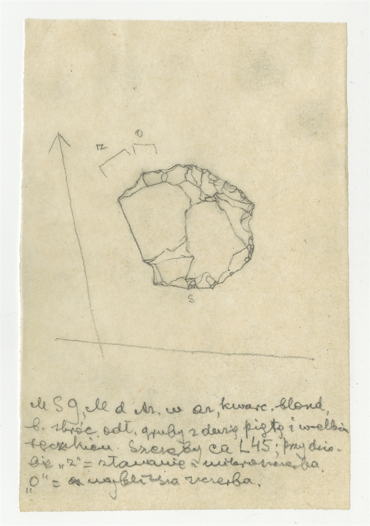 Rysunek zabytku krzemiennego z Mas-d'Azil w tuszu