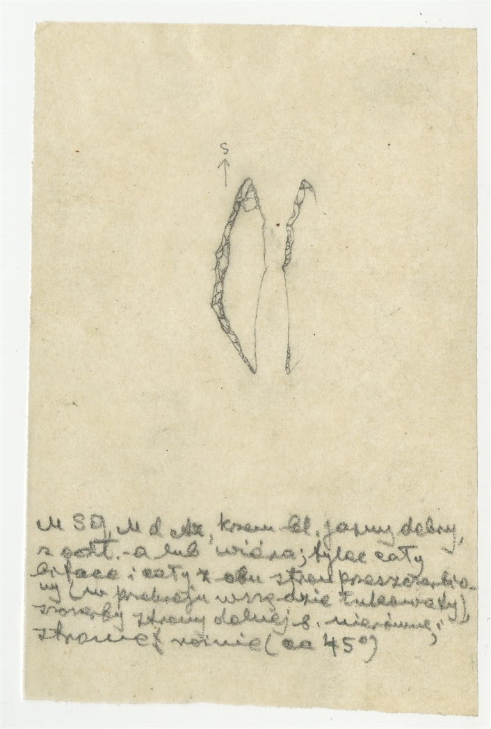 Rysunek zabytku krzemiennego z Mas-d'Azil w tuszu