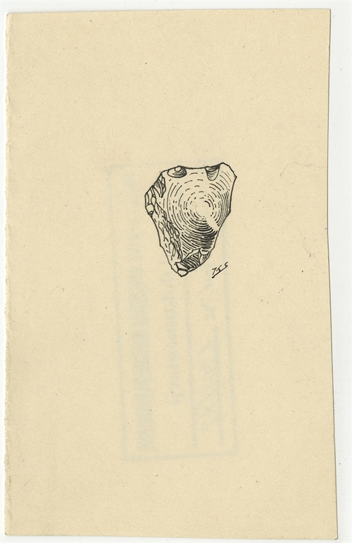 Rysunek zabytku krzemiennego ze stanowiska Gaj. Tusz na kartonie.
