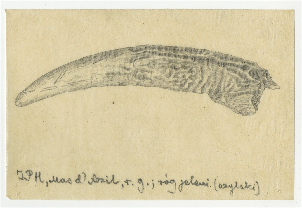 Rysunek zabytku z rogu jelenia z Mas-d'Azil w ołówku