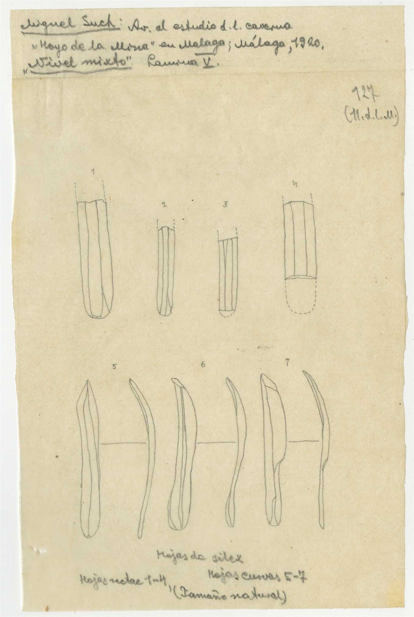 Rysunki - kopie zabytków kościanych i krzemiennych z publikacji Miguela Such'a "Hayo de la Mina". Tablica V