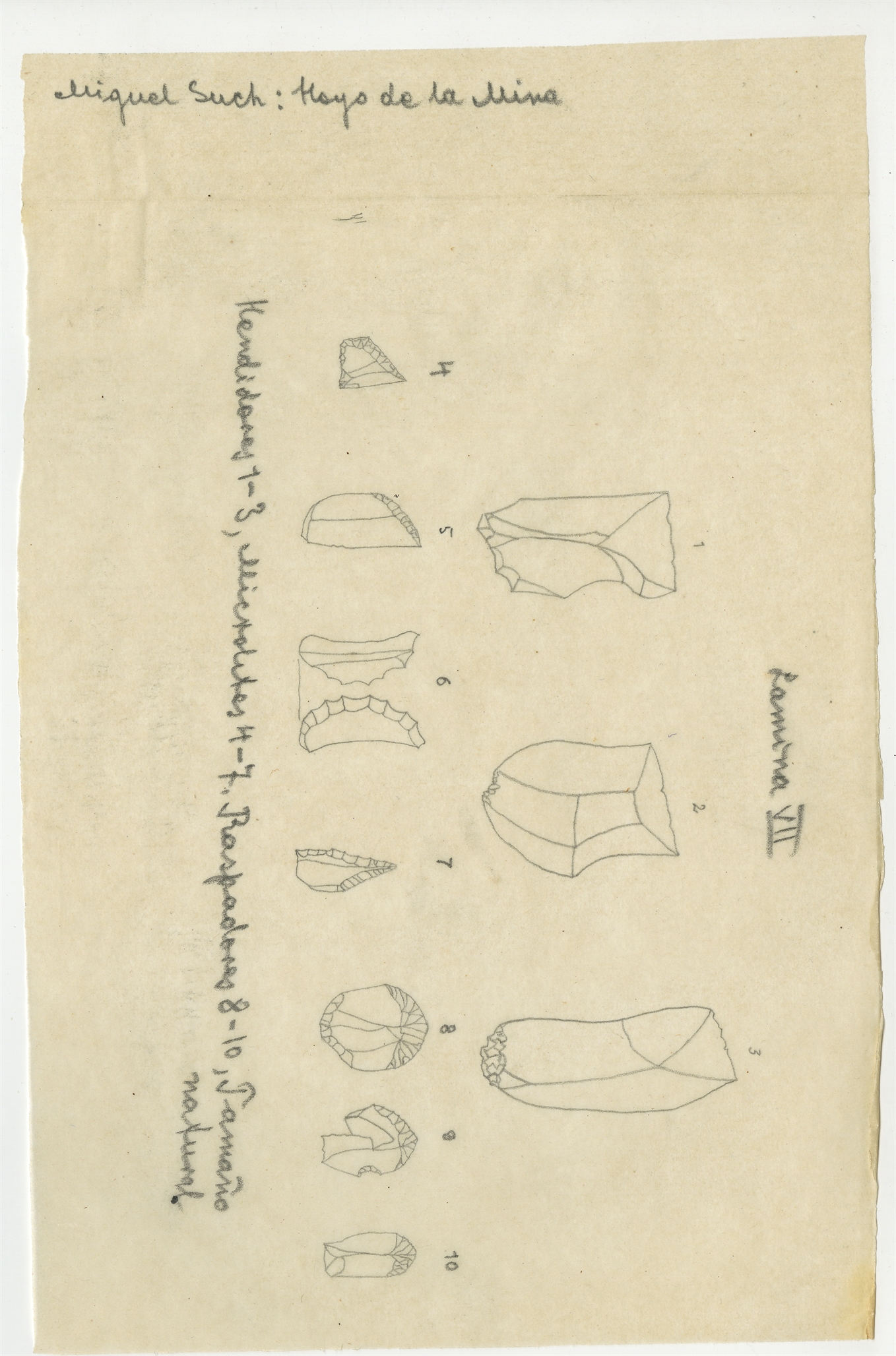 Rysunki - kopie zabytków kościanych i krzemiennych z publikacji Miguela Such'a "Hayo de la Mina". Tablica VI