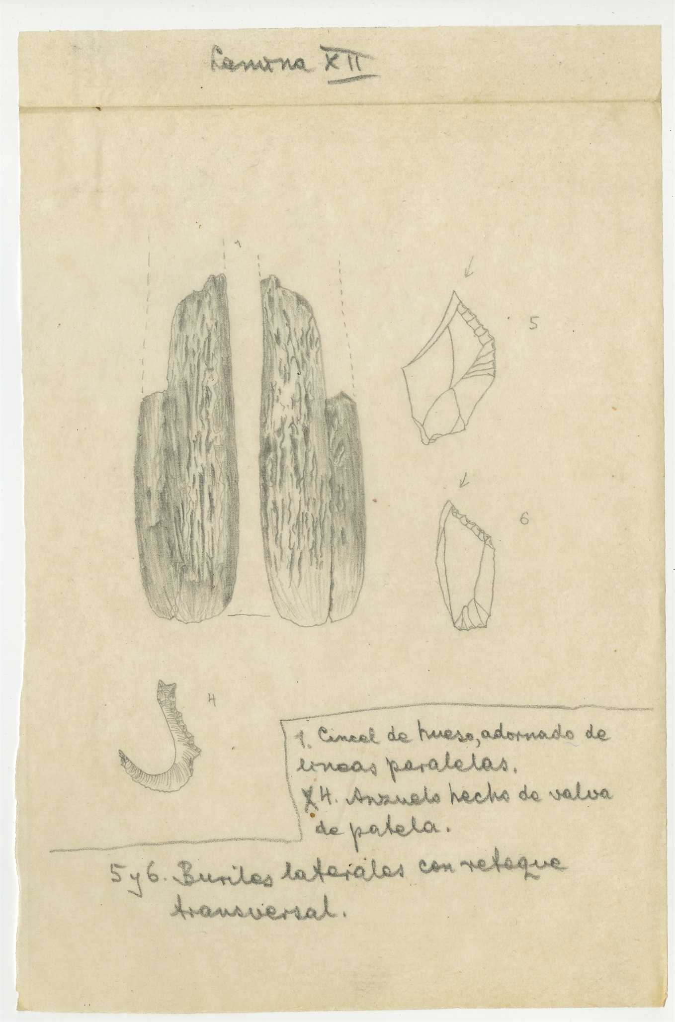 Rysunki - kopie zabytków kościanych i krzemiennych z publikacji Miguela Such'a "Hayo de la Mina". Tablica X