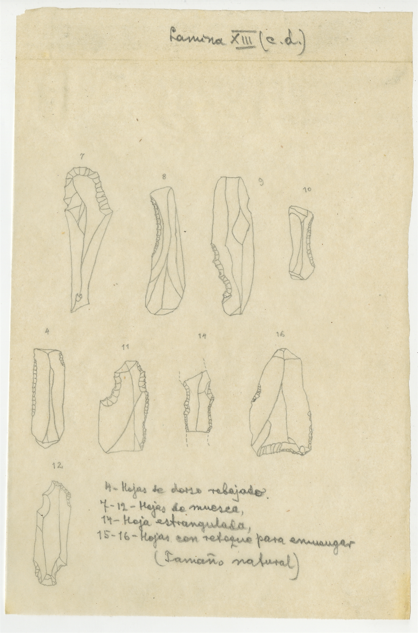 Rysunki - kopie zabytków kościanych i krzemiennych z publikacji Miguela Such'a "Hayo de la Mina". Tablica XII