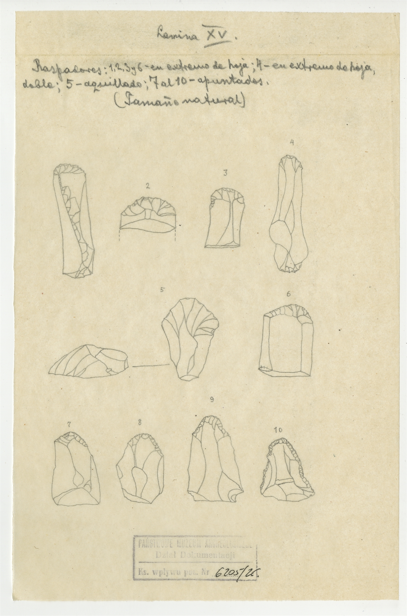 Rysunki - kopie zabytków kościanych i krzemiennych z publikacji Miguela Such'a "Hayo de la Mina". Tablica XIII (cd)