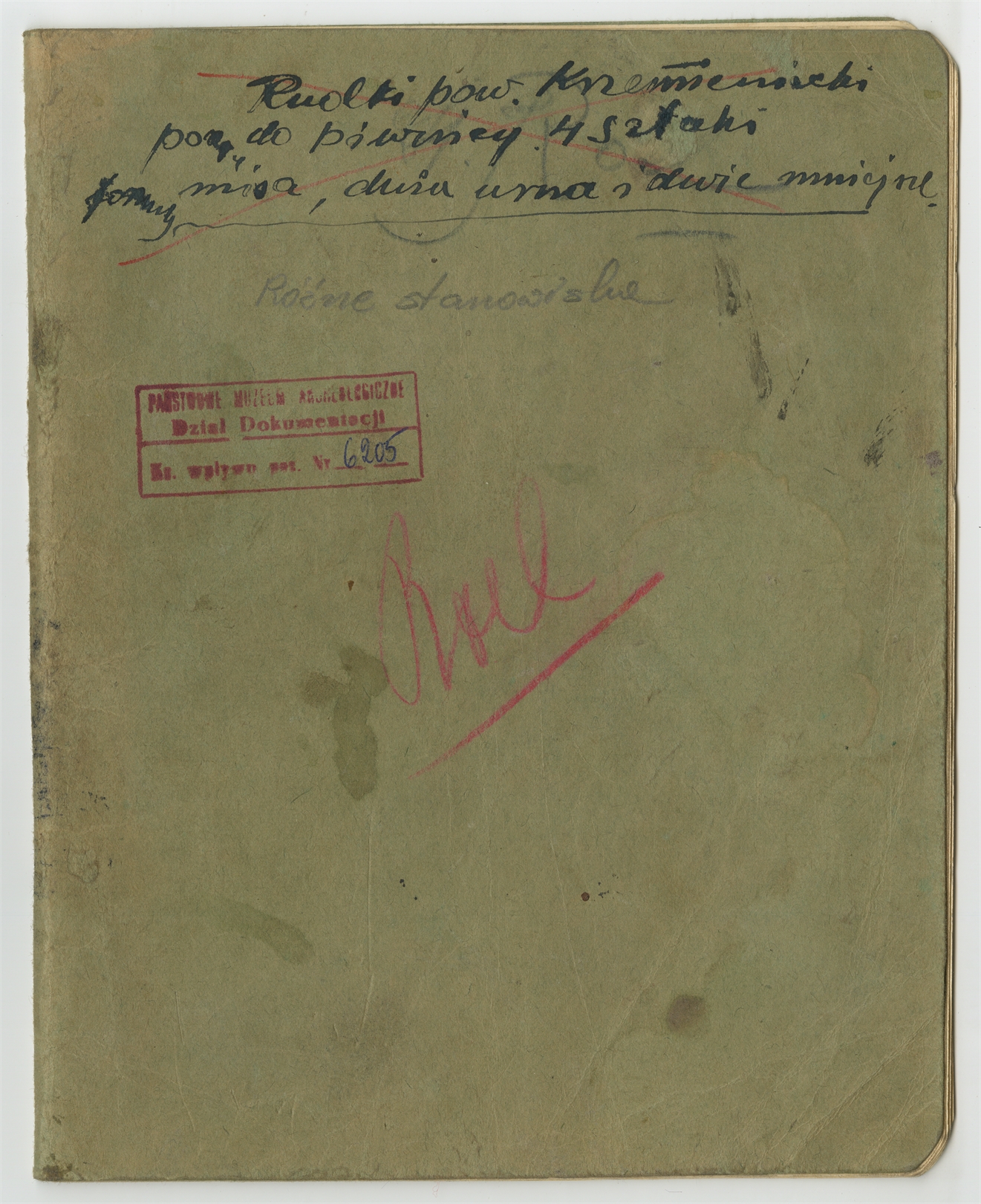 Rysunki robocze zabytków (naczynia gliniane topory kamienne) z różnych stanowisk. Zeszyt - okładka