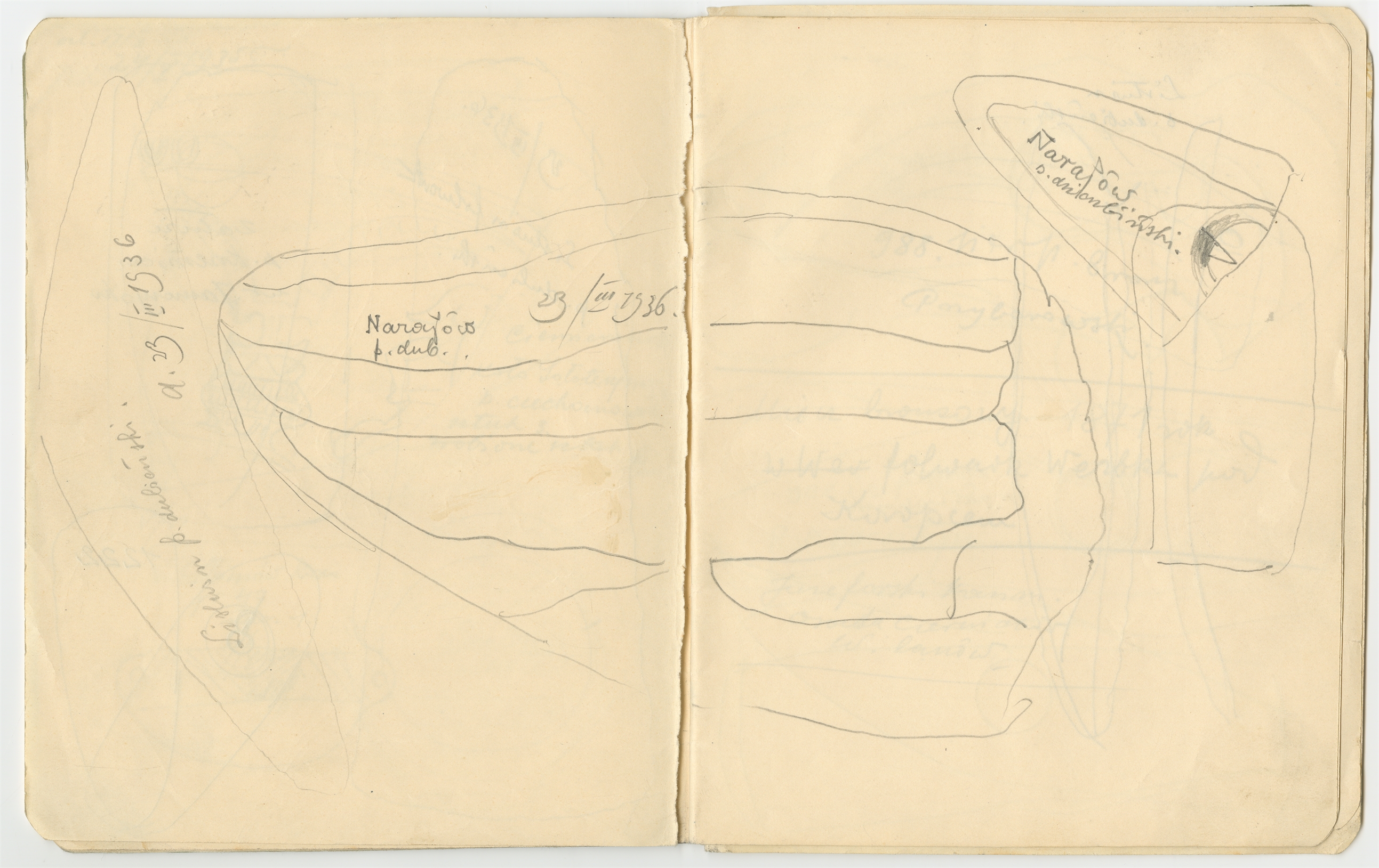 Rysunki topora kamiennego i rdzenia krzemiennego - Narajów