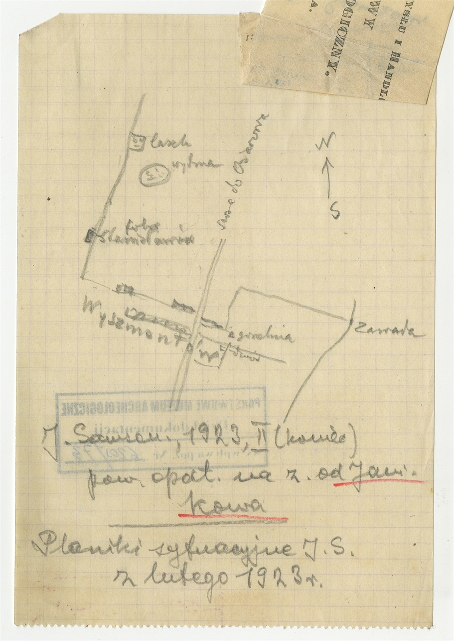 Szkic przedstawiający miejscowość Janikowo i lokalizację wydmy z krzemieniami luty 1923 r. str. 2: „Planiki sytuacyjne J. S. z lutego 1923”