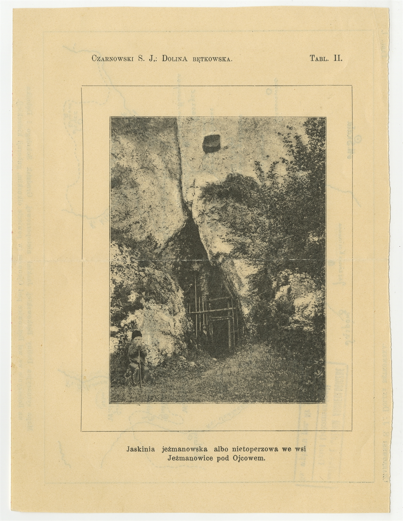 Tablica I pt. "Mapka sytuacyjna Doliny Bętkowskiej Jaskini nietoperzowej Grodzisk Sokolego i Dębnika na Boleszynie we wsi Bętkowice pod Ojcowem (w powiecie olkuskim gubernji kieleckiej)" z publikacji S. J. Czarnowskiego pt. "Dolina Bętkowska i jej zabytki przeddziejowe" Warszawa-Kraków 1910 - strona 1: tablica II