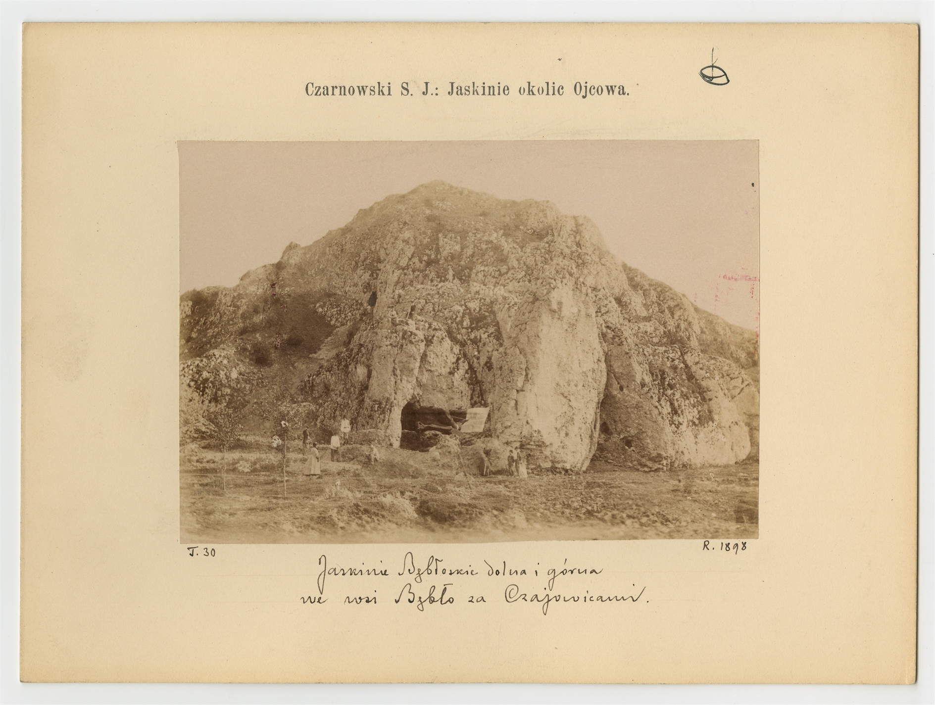 Tablica z fotografią autorstwa Czarnowskiego S.J. przedstawiająca "Jaskinie okolic Ojcowa"