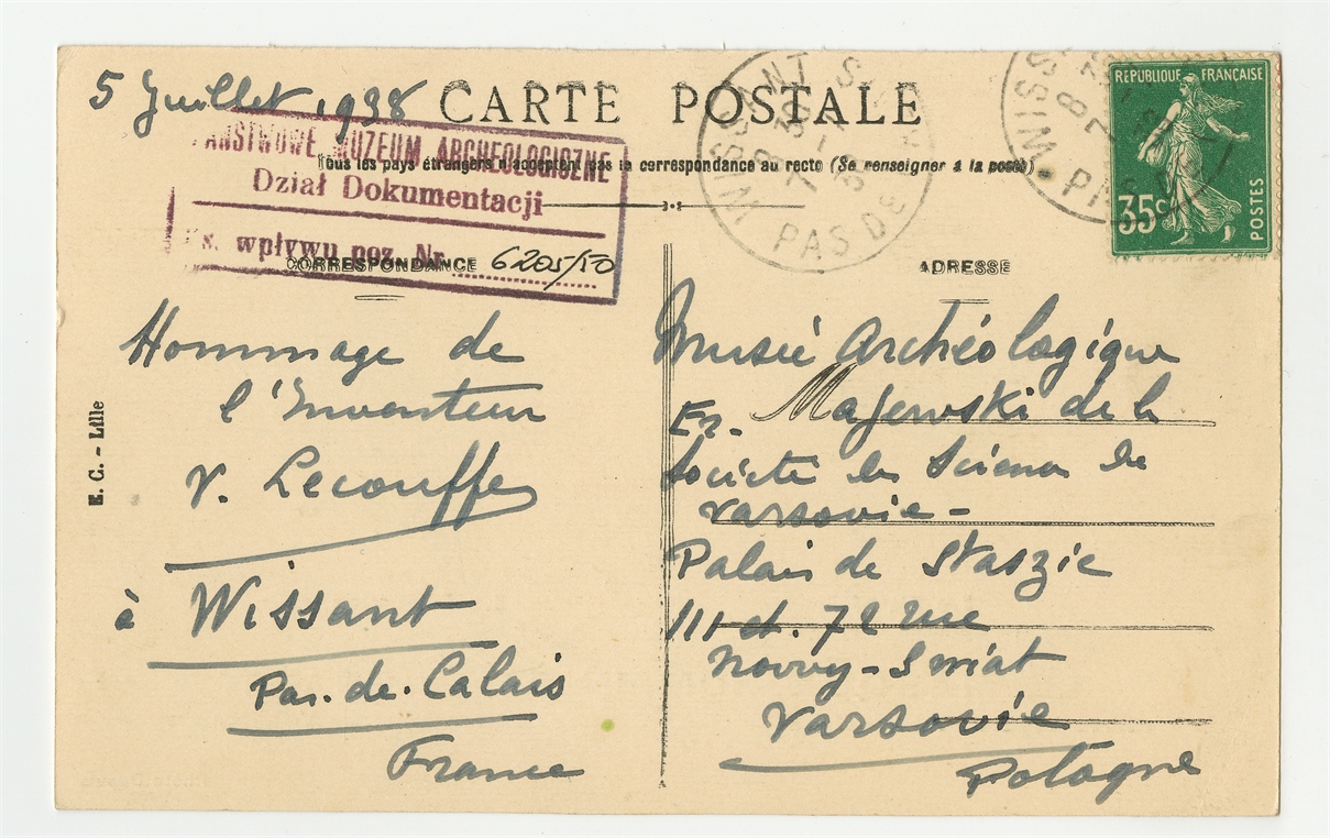 Widokówka do Stefana Krukowskiego z dn. 5 VII 1938 r. w języku francuskim nadawca niezidentyfikowany - awers