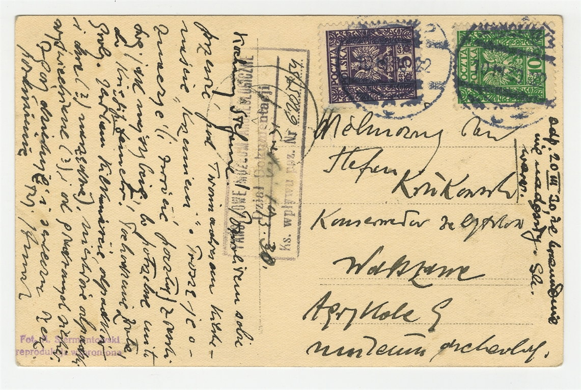 Widokówka od Józefa Żurowskiego do Stefana Krukowskiego z dnia 19 III [19]30 roku - awers