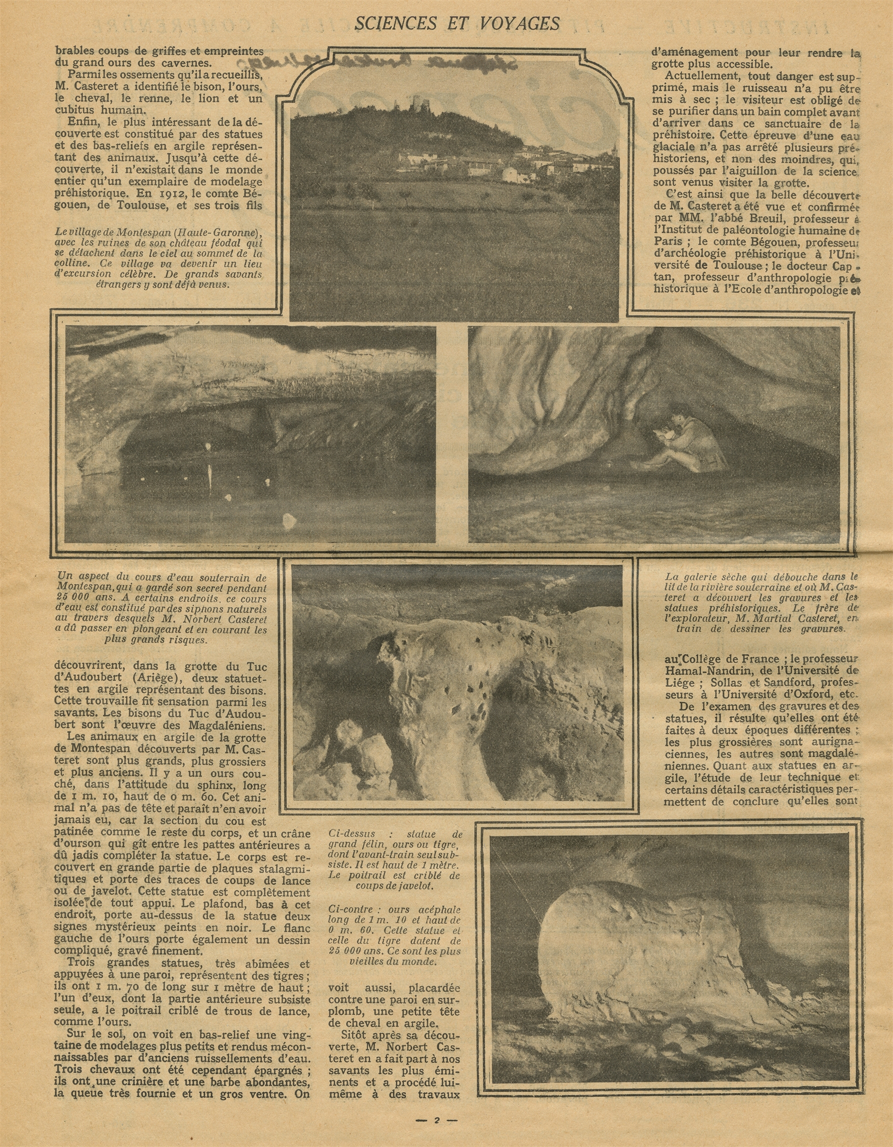 Wycinek prasowy z czasopisma "Sciences et Voyages" Nr 236 str 2 zatytułowany "On ? découvert dans une caverne des Pyrénées des vestiges de la civilisation humaine qui datent de 25 000 ans" 6 marca 1924r.