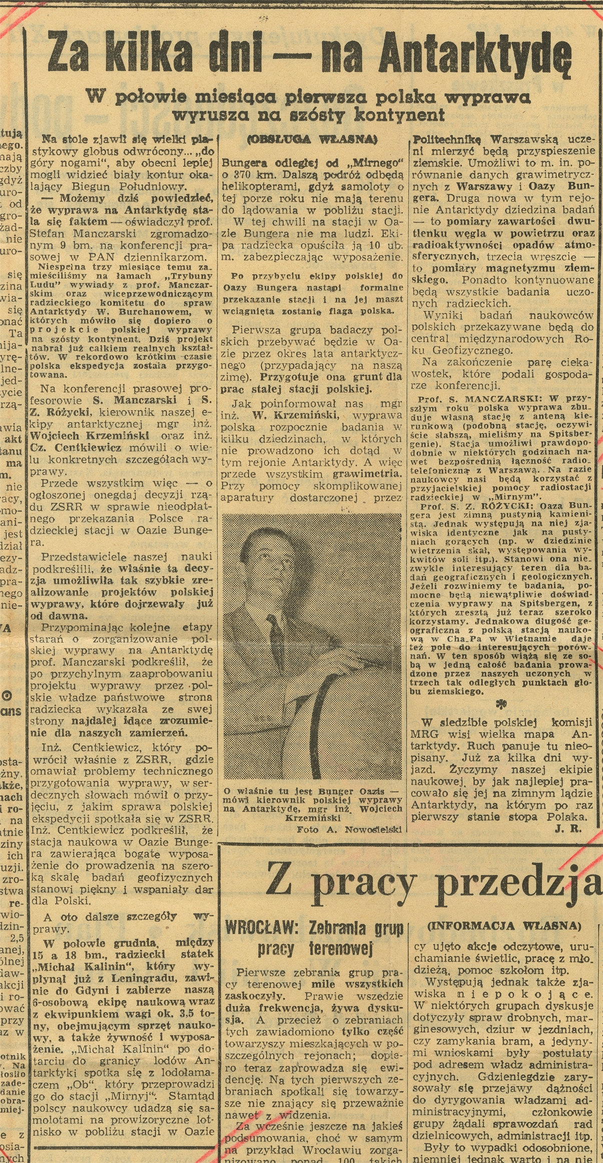 Wycinek prasowy z "Trybuny Ludu" Nr 344 str 4 zatytułowany "Za kilka dni - na Antarktydę"; 11 grudnia 1956