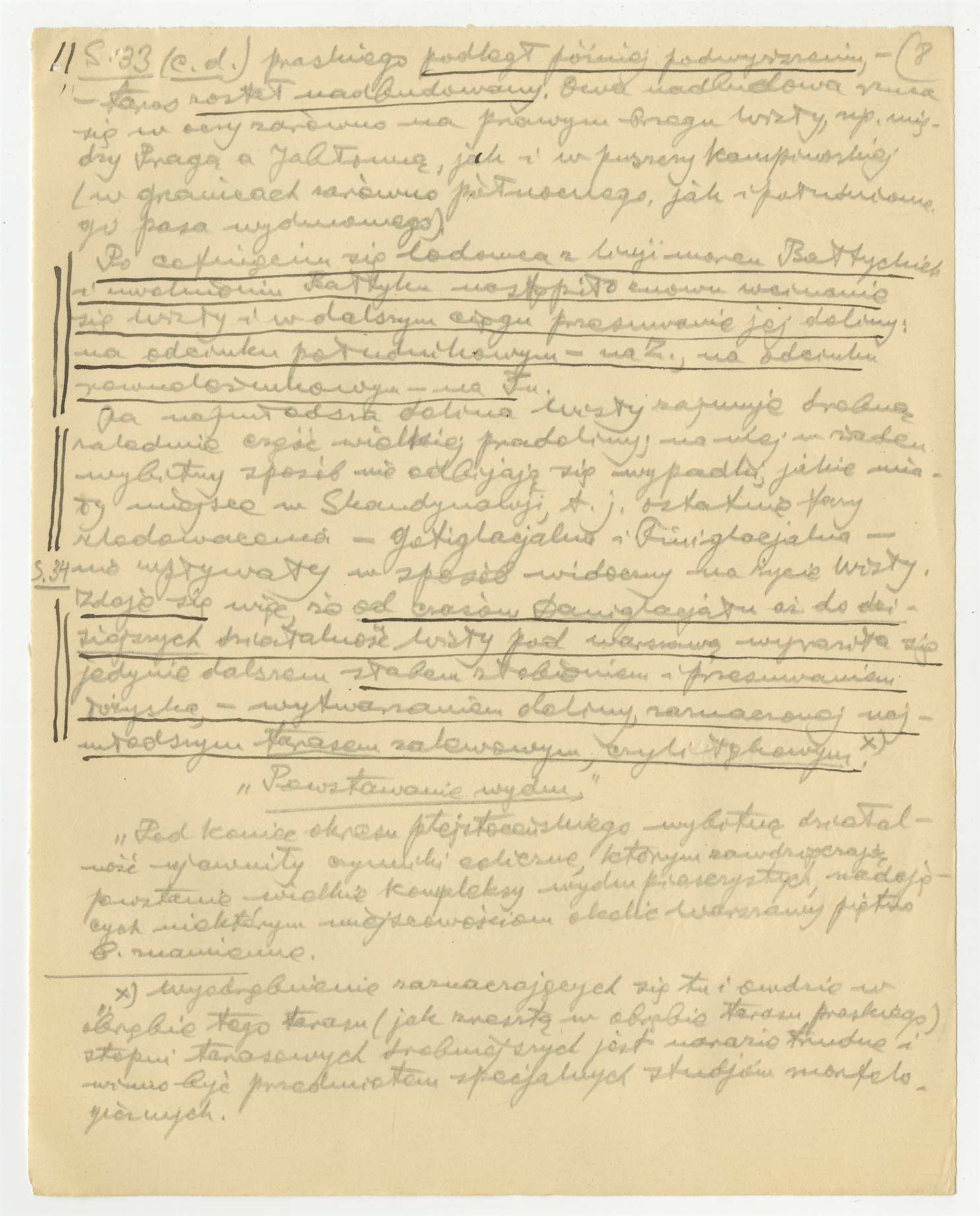 Wypisy i notatki S. Krukowskiego z publikacji - J. Samsonowicz "Przewodnik geologiczny po okolicach Warszawy" - strona 10: dotyczy stron S.33 (c.d.) S.34 (autorska strona 8)