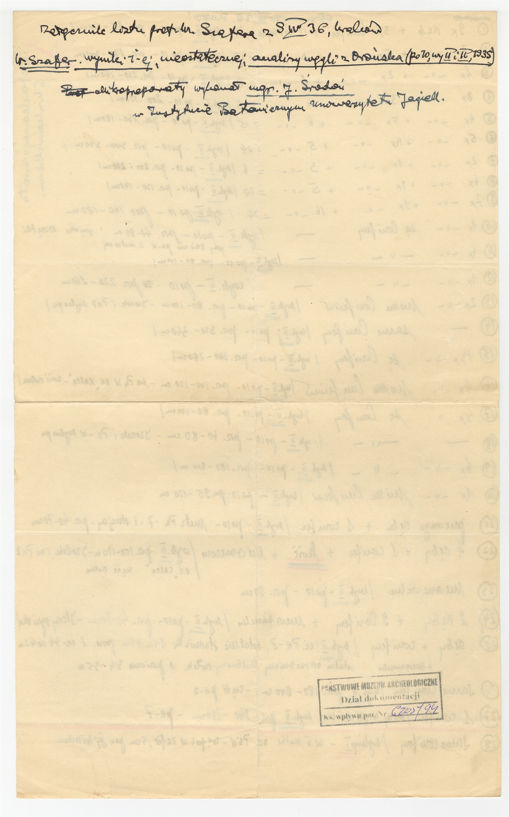 Załącznik listu prof. W. Szafera wykaz próbek do analizy - notatka Krukowskiego "Załącznik do listu prof. W. Szafera z 8 IV 36 Kraków…"