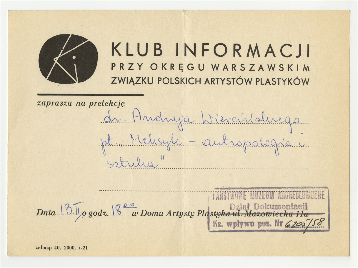 Zaproszenie na prelekcję dr Andrzeja Wiercińskiego pt. "Meksyk - antropologia i sztuka" 13 II godz. 18.00