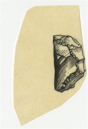 Zbiór rysunków zabytków krzemiennych (15 szt.) wykonanych ręką NN na 15 kalkach stanowiących materiał ilustracyjny do pracy naukowej Stefana Krukowskiego pt. "Przemysł płudzki" - rysunek 4: 1 zabytek krzemienny