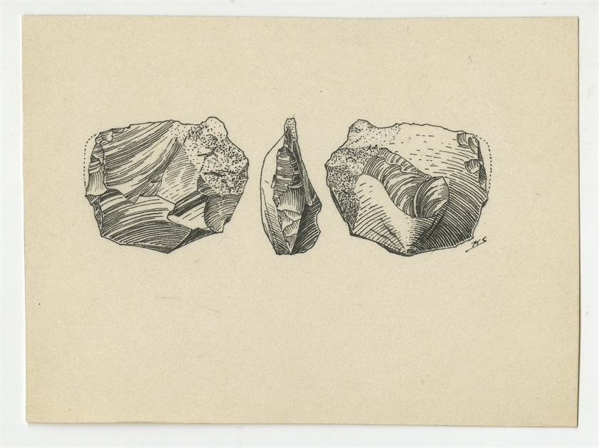 Zbiór rysunków zabytków krzemiennych o nieznanej proweniencji wykanane przez K. Sicińskiego - strona 2: rysunek zabytku krzemiennego w trzech rzutach