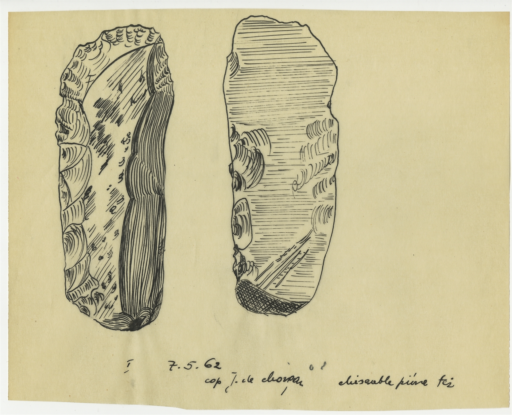 Zbiór rysunków zabytków krzemiennych wykonanych na 35 kalkach przez Z. Szmita oraz J. Morgana w okresie maj-lipiec 1962 r. - kalka 1: rysunek siekiery krzemiennej w dwóch rzutach 7.5.[19]62