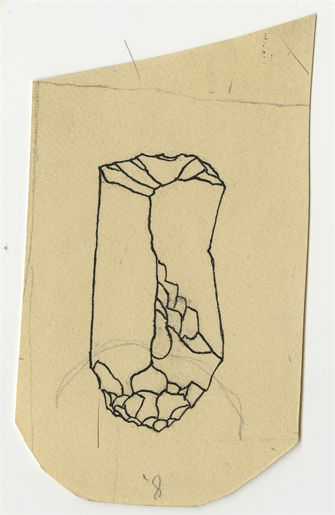 Zbiór rysunków zabytków krzemiennych wykonanych przez P. Dyniewiczówną zebranych w jednej kopercie opisanej ręką Stefana Krukowksiego "Rysunki P. Dyniewiczównej" - strona 17: rysunek zabytku krzemiennego opatrzonego numerem 8.