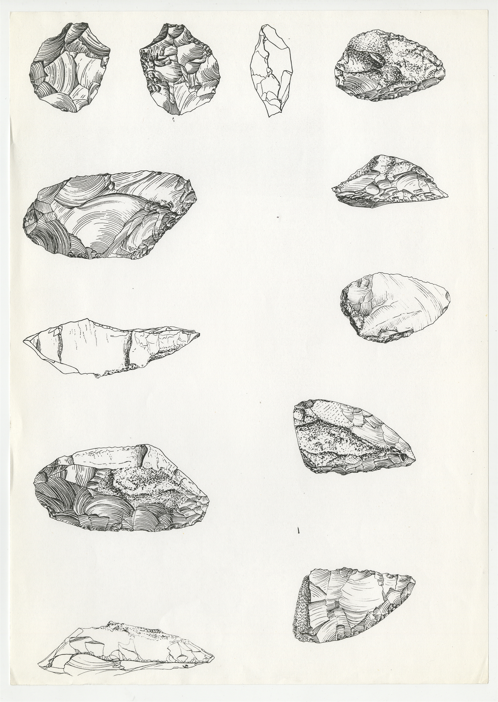 Zbiór rysunków zabytków krzemiennych wykonanych przez P. Dyniewiczówną zebranych w jednej kopercie opisanej ręką Stefana Krukowksiego "Rysunki P. Dyniewiczównej" - strona 2: rysunek zabytku krzemiennego