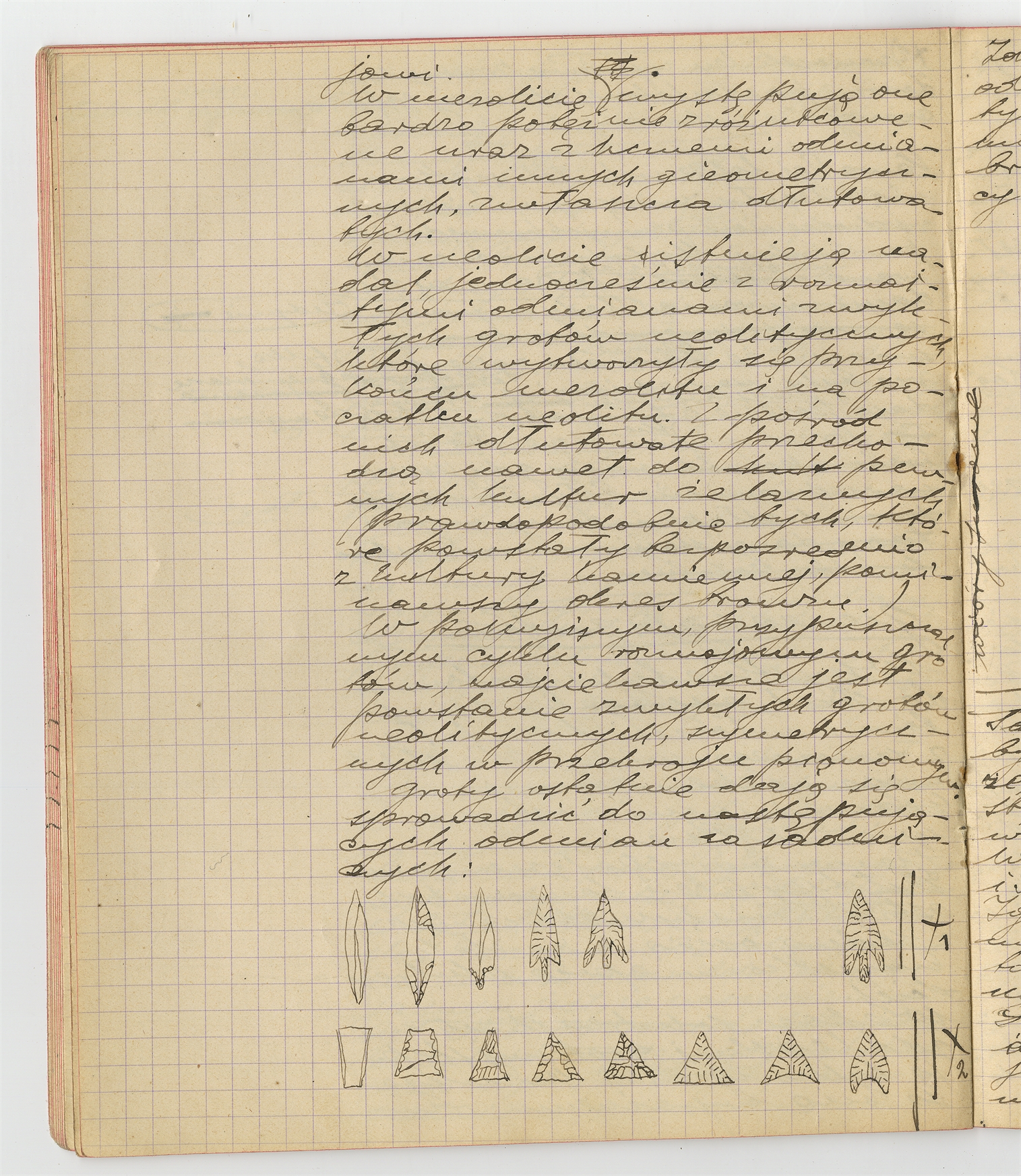 Zeszyt z rękopisem pracy o narzędziach - strona 21: treść pracy S. Krukowskiego (bez tytułu): "Genealogia grotów" c..d