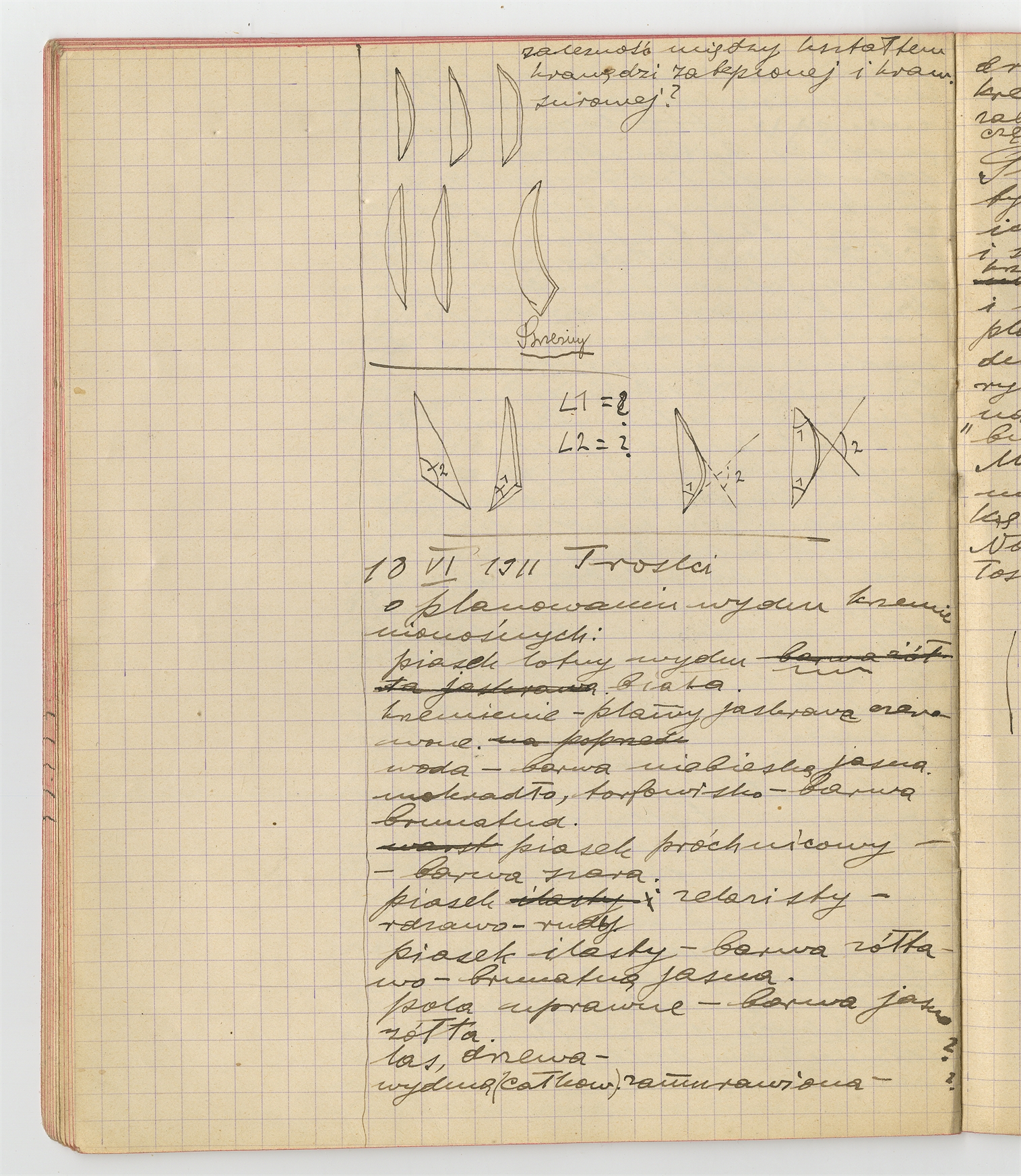 Zeszyt z rękopisem pracy o narzędziach - strona 25: treść pracy S. Krukowskiego (bez tytułu): "Genealogia grotów" c..d "O planowaniu wydm krzemienionośnych"