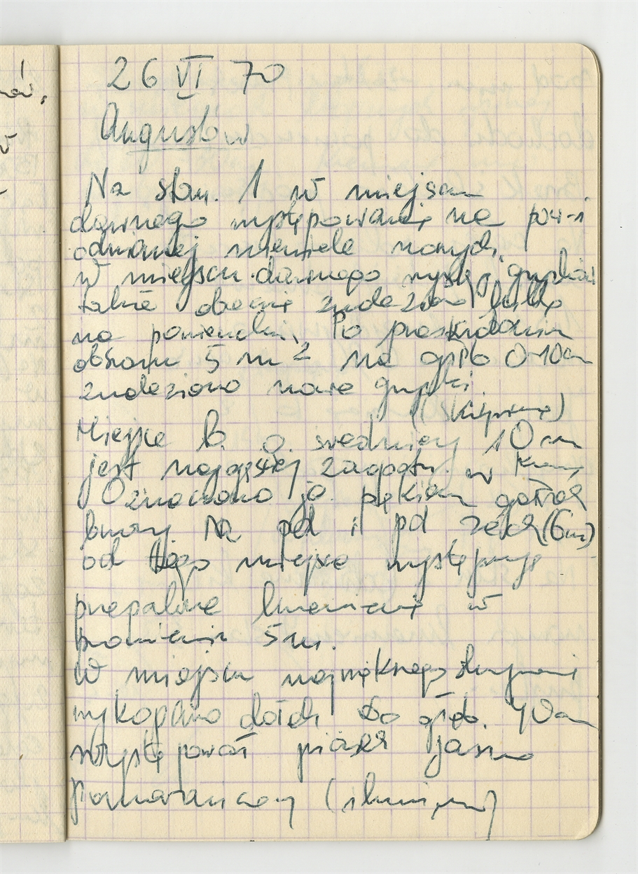Zofii Sulgostowskiej notatki z pola 1970 - prawobrzeżna okolica W-wy sporządzone w notesie w kratkę - strona 23: zatytułówana "Augustów" "Na stan. 1" … "jasno pomarańczowy (…) 26bVI [19]70 (bez numeru strony)