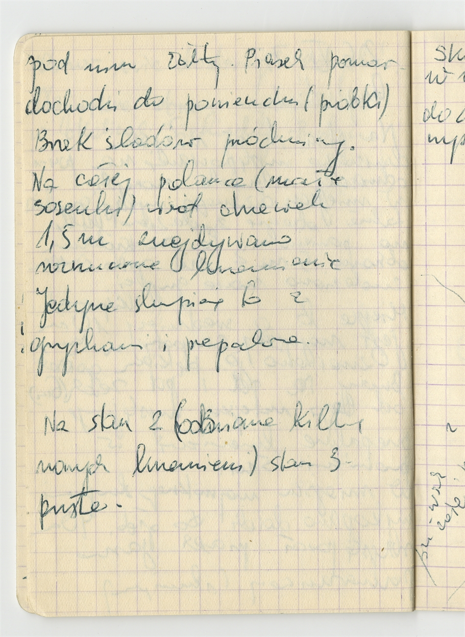Zofii Sulgostowskiej notatki z pola 1970 - prawobrzeżna okolica W-wy sporządzone w notesie w kratkę - strona 24: "pod nim żółty" … "stan. 3 puste" (bez numeru strony)