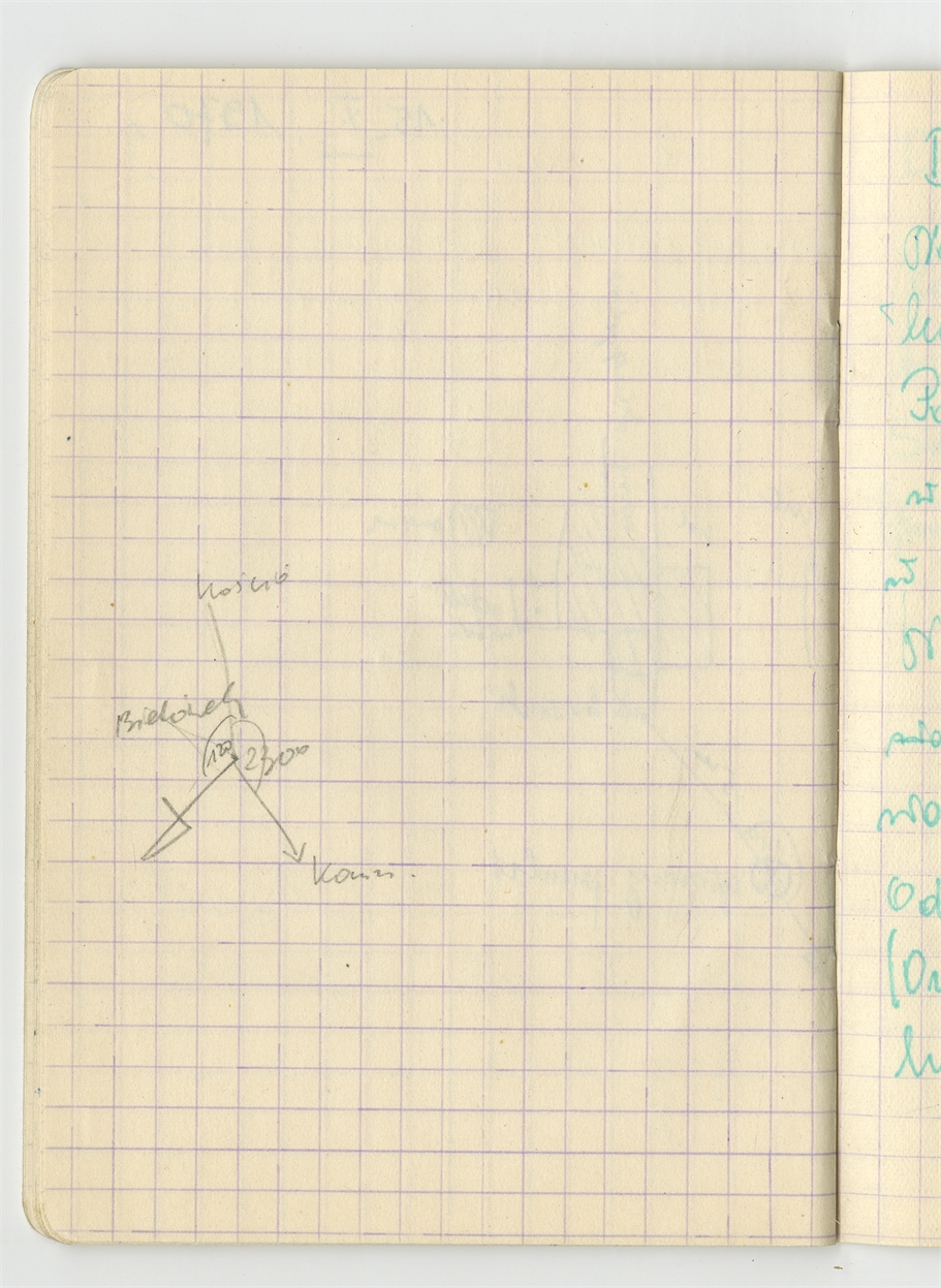 Zofii Sulgostowskiej notatki z pola 1970 - prawobrzeżna okolica W-wy sporządzone w notesie w kratkę - strona 33: szkic sytuacyjny stanowiska Bielówek (bez numeru strony)