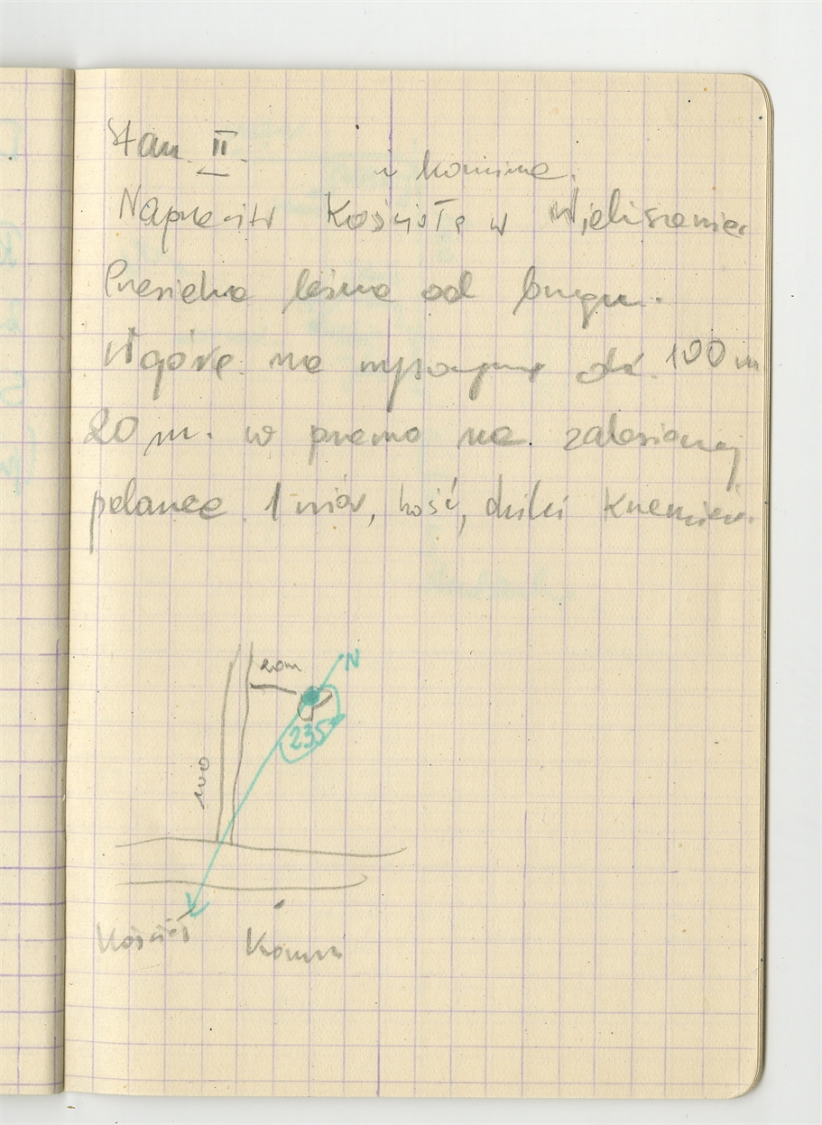 Zofii Sulgostowskiej notatki z pola 1970 - prawobrzeżna okolica W-wy sporządzone w notesie w kratkę - strona 36: zatytułowana "Stan. III" "Naprzeciw kościoła" … "kość dzkiki krzemień" (bez numeru strony)